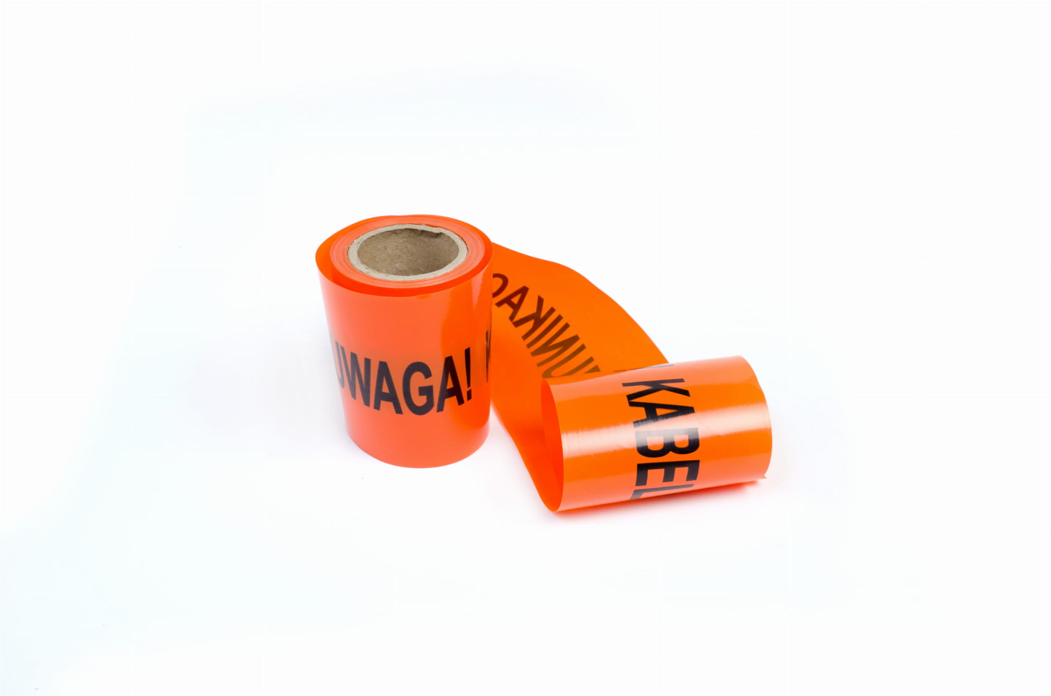 Taśma kablowa ostrzegawcza w kolorze pomarańczowym służy do oznaczania tras przebiegu podziemnych sieci światłowodowych. Taśma została wykonana w 100% z recyklingowego polietylenu (LDPE). Folia kablowa ostrzegawcza posiada nadruk o treści „Uwaga! Kabel światłowodowy”. Taśma nie posiada wkładki stalowej. Istnieje możliwość wykonania taśmy kablowej ostrzegawczej w kolorze pomarańczowym z niestandardowym nadrukiem przygotowanym według indywidualnego projektu.